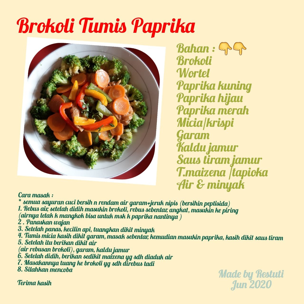 July 9, 2020 ZhenShanMei Pekanbaru BROKOLI TUMIS PAPRIKA resep vegetarian Created by Restuti shijie Bagikan di: Share on Facebook (Opens in new window) Facebook Share on WhatsApp (Opens in new window) WhatsApp Related