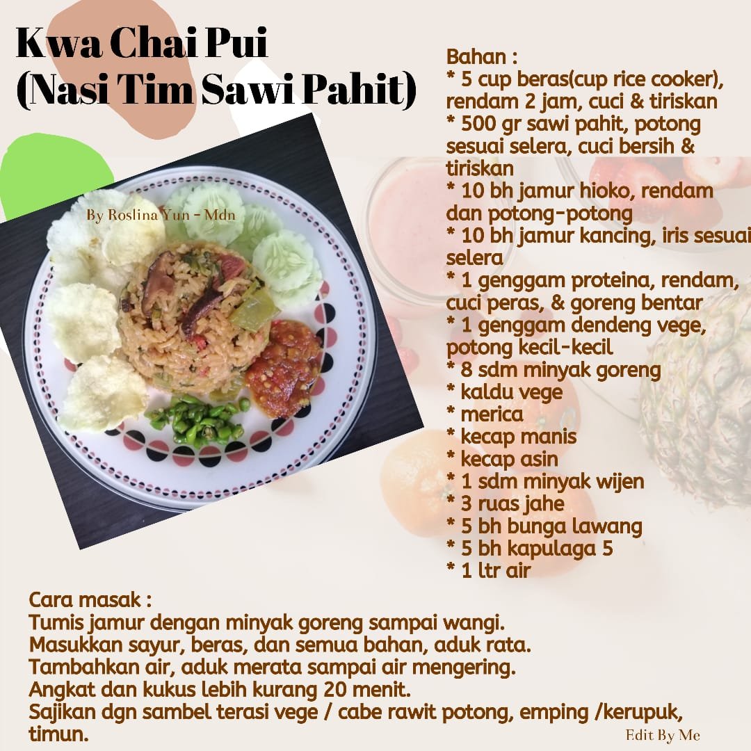 Angkat dan kukus lebih kurang 20 menit. Sajikan dgn sambel terasi vege/ cabe rawit potong, emping /kerupuk, timun.