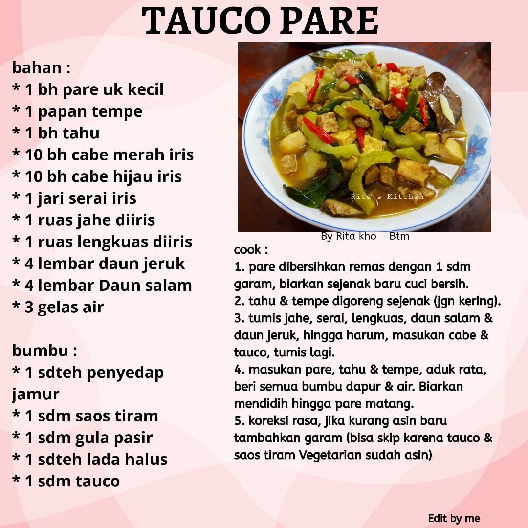 July 20, 2020 ZhenShanMei Pekanbaru TAUCO PARE resep vegetarian Created by Rita Kho, Edited by Restuti Shijie Bagikan di: Share on Facebook (Opens in new window) Facebook Share on WhatsApp (Opens in new window) WhatsApp Related