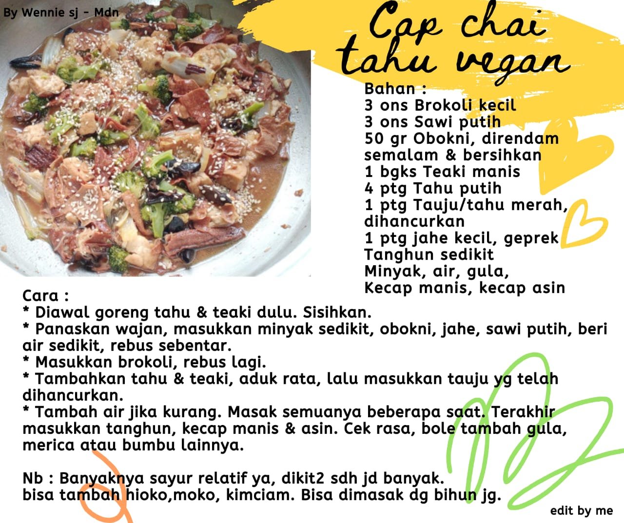 Bahan utama: Brokoli, Sawi putih, Obokni, Tieki, Tahu putih, Tauju/ Tahu merah,
