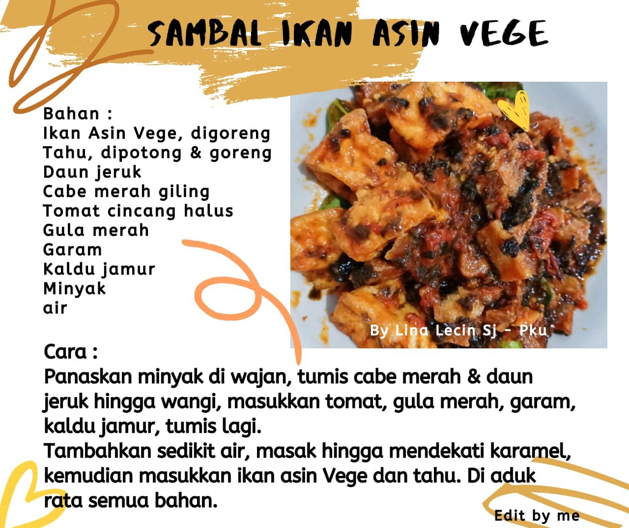 July 24, 2020July 27, 2020 ZhenShanMei Pekanbaru SAMBAL IKAN ASIN VEGE resep vegetarian Created by Lina Lecin, Edited by Restuti Shijie Bahan utama: Ikan asin vege, tahu, tomat Bagikan di: Share on Facebook (Opens in new window) Facebook Share on WhatsApp (Opens in new window) WhatsApp Related