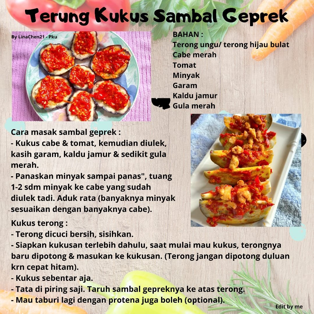 July 29, 2020 ZhenShanMei Pekanbaru TERUNG KUKUS SAMBAL GEPREK resep vegetarian Created by Lina chen21, Edited by Restuti Shijie Bahan utama: Terung/ terong Bagikan di: Share on Facebook (Opens in new window) Facebook Share on WhatsApp (Opens in new window) WhatsApp Related