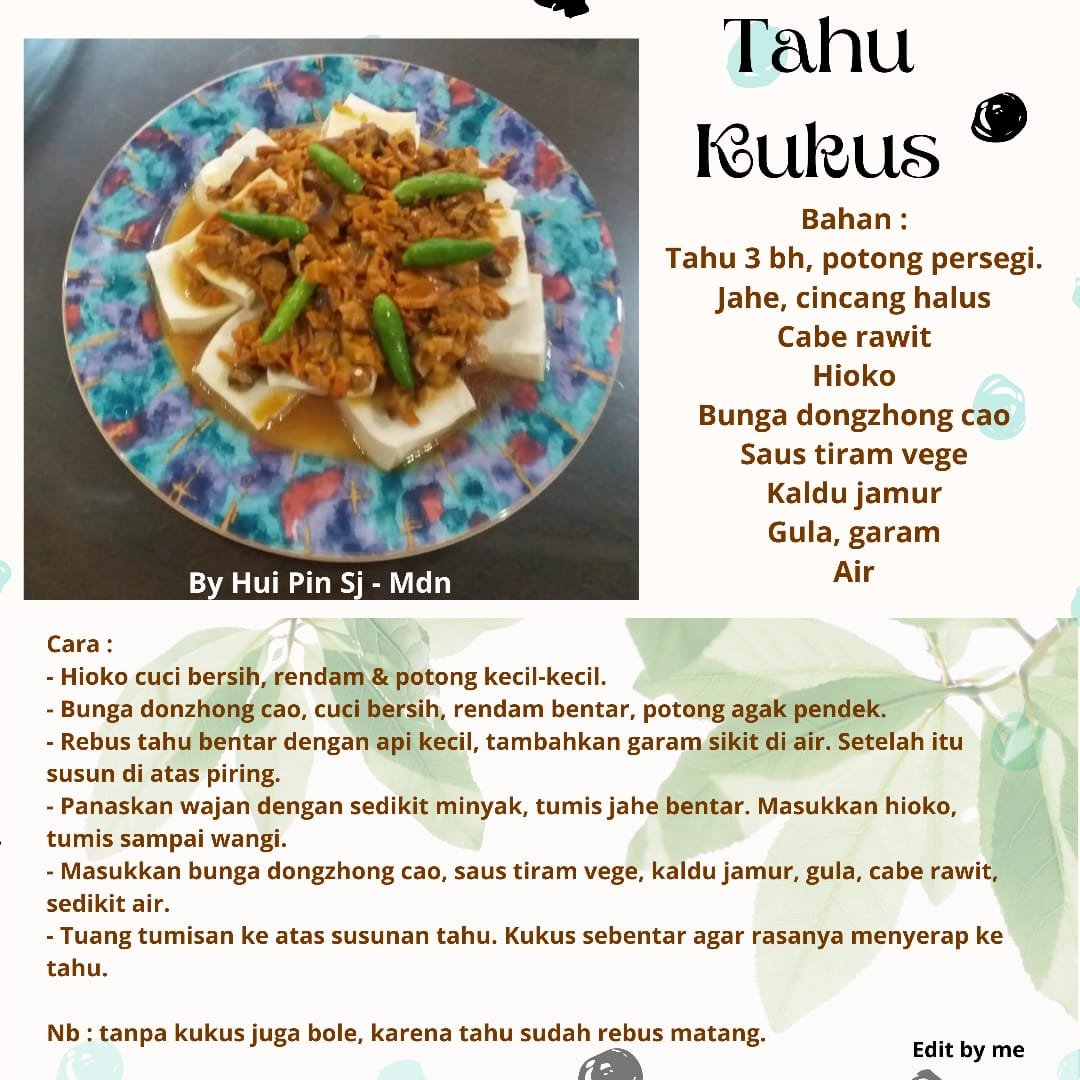 Nb: tanpa kukus juga bole, karena tahu sudah rebus matang.