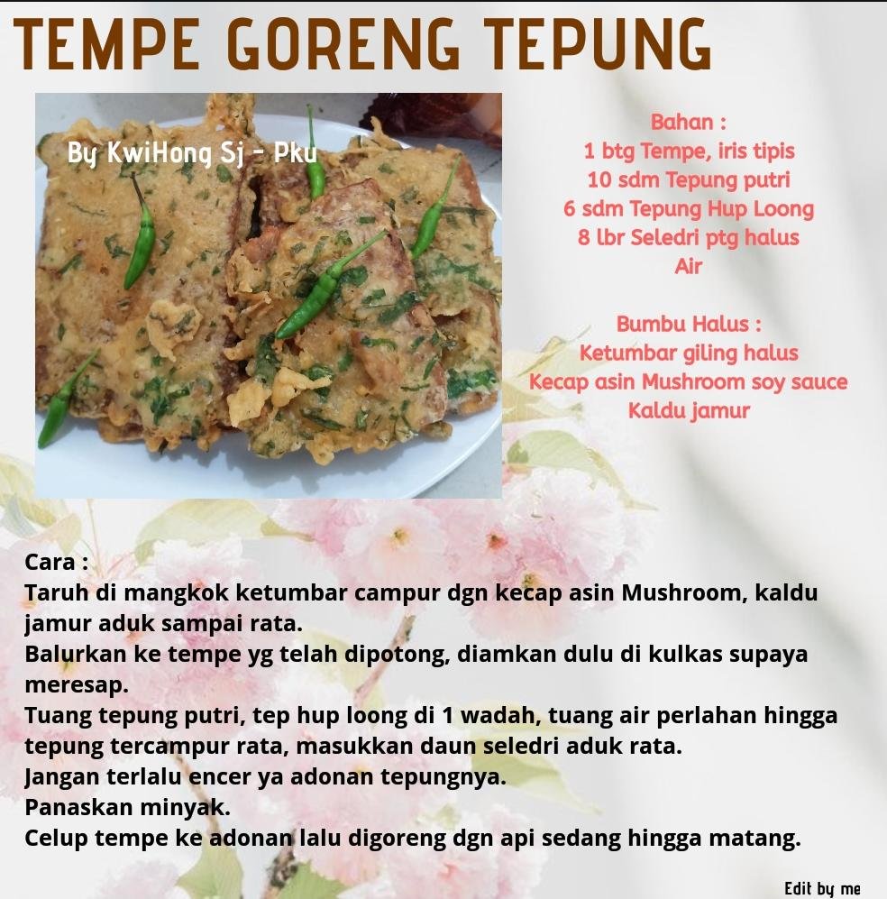 Celup tempe ke adonan lalu digoreng dgn api sedang hingga matang.