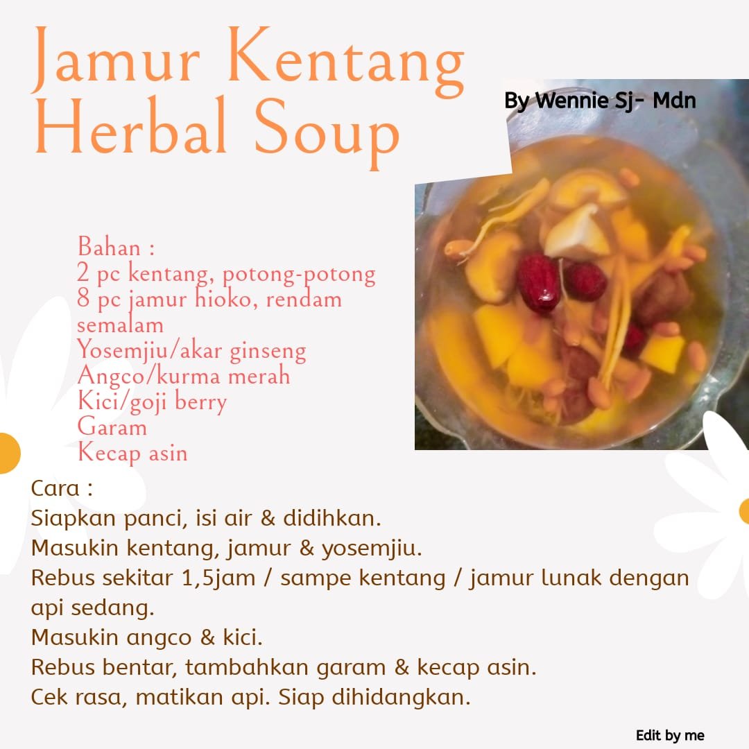 Kentang Jamur Herbal Soup- Resep Vegetarian