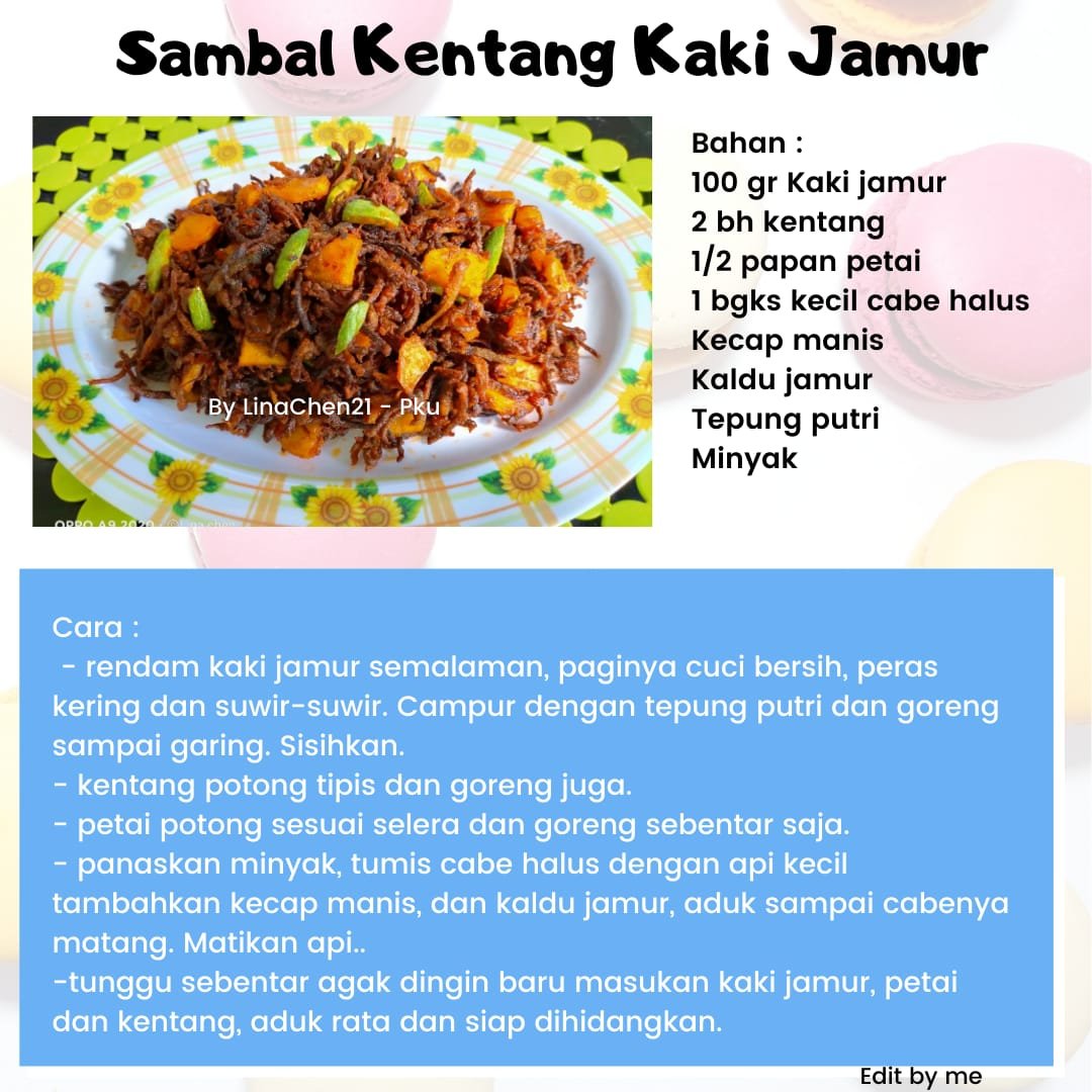 -tunggu sebentar agak dingin baru masukan kaki jamur, petai dan kentang, aduk rata dan siap dihidangkan.