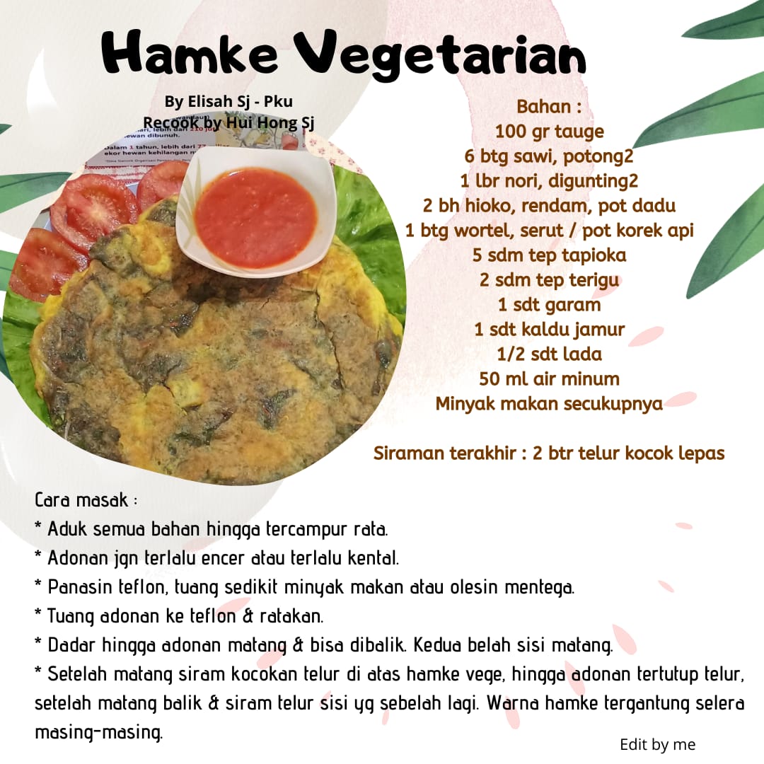 Sekilas hamke Vegetarian: hamke merupakan makanan khas dari daerah Bagansiapiapi , Riau khususnya dikalangan etnis Tionghoa. Buat sudah vegetaris dan kangen sama hamke.. ini nih resep bisa dicoba..