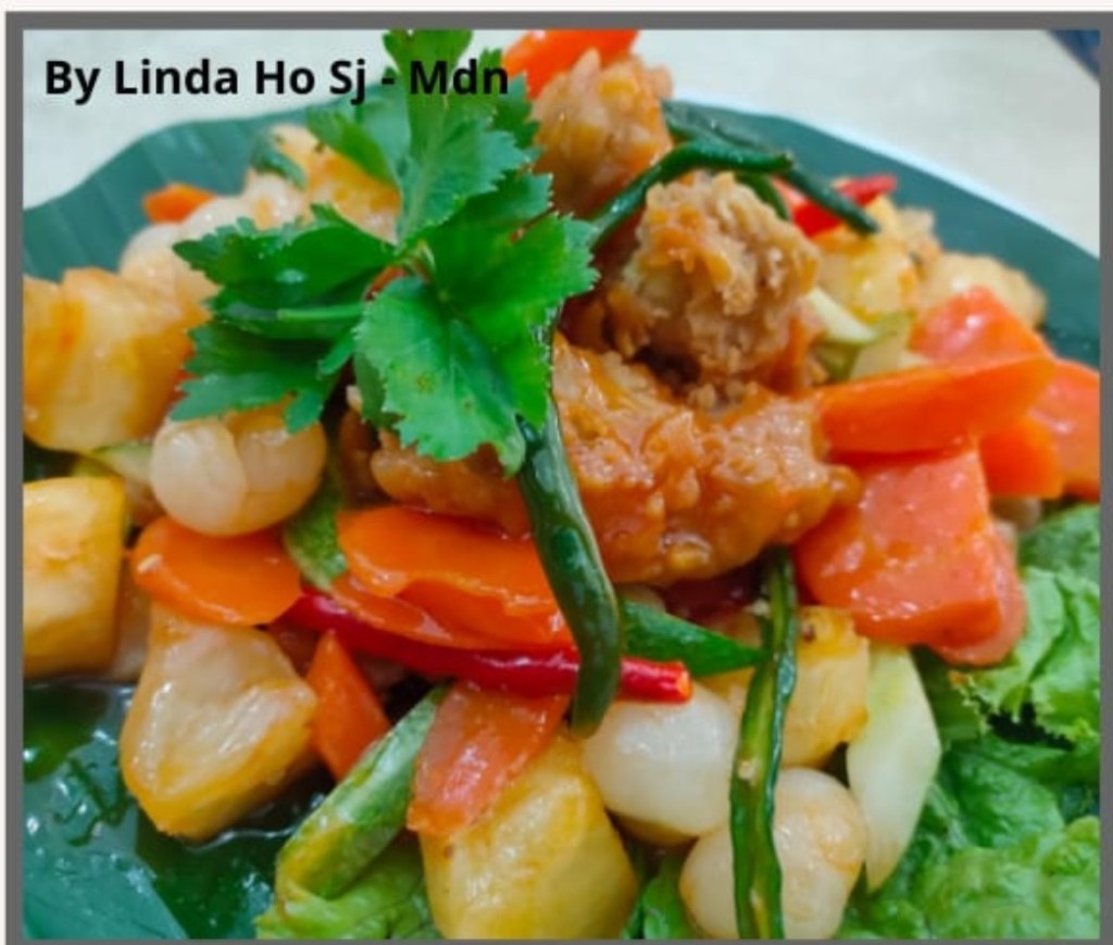 Ini juga menu bunga tebu asam manis, cuman manisnya agak lain karena dipadukan dengan nenas, longan, dan Wortel.. warnanya pun menggugah selera. Berikut resepnya https://lovepeaceveggie.com/2020/09/03/bunga-tebu-asam-manis-resep-vegetarian/