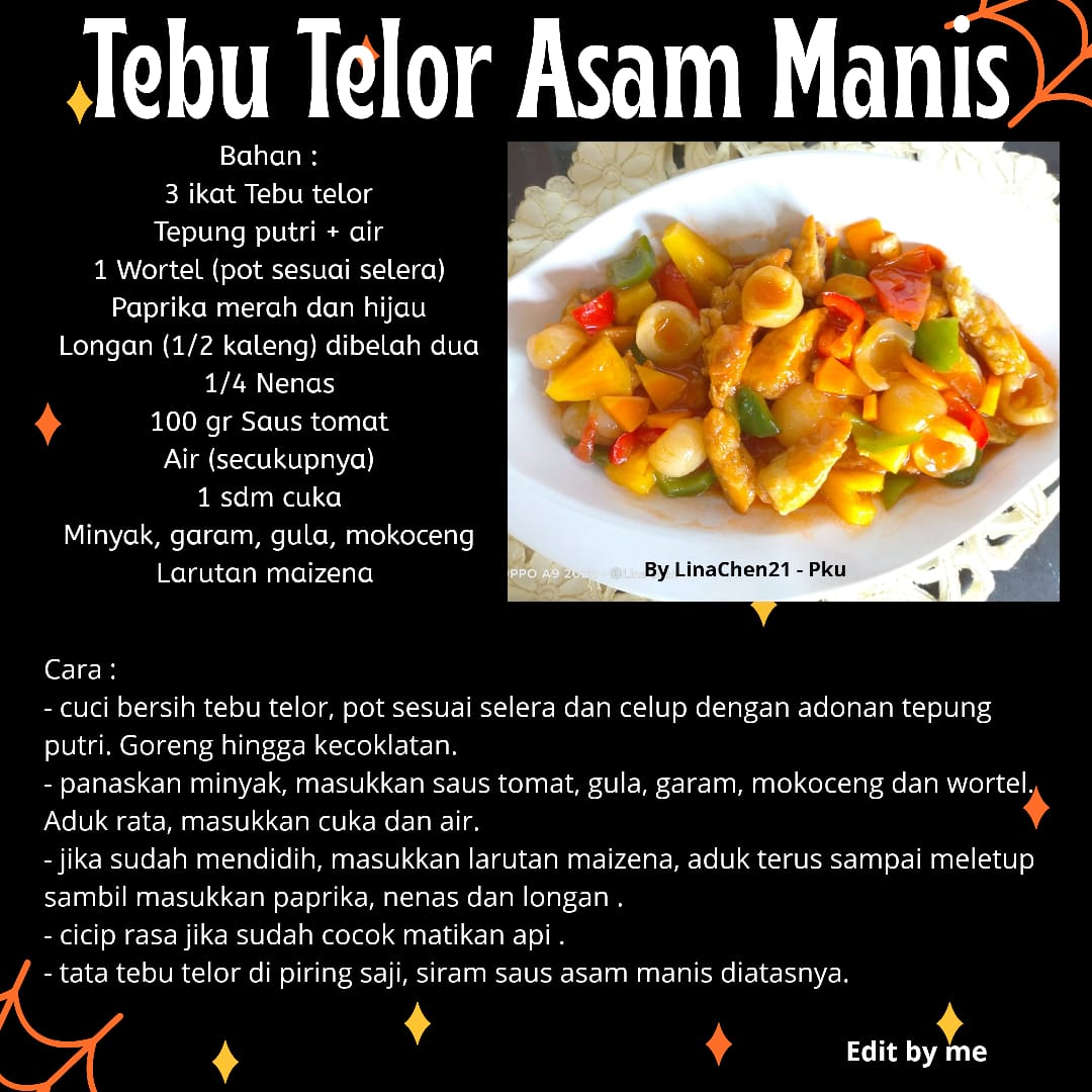 – tata tebu telor di piring saji, siram saus asam manis diatasnya.