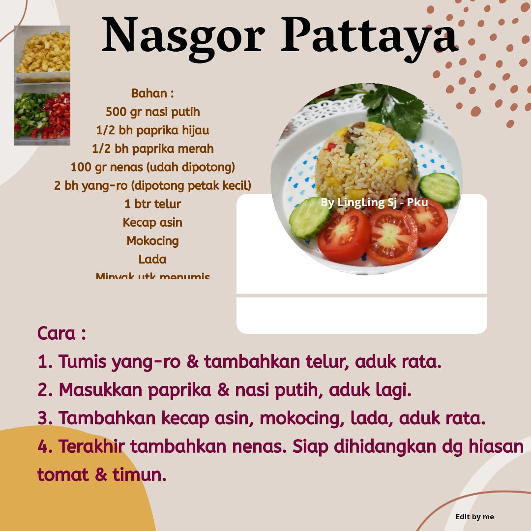 4. Terakhir tambahkan nenas. Siap dihidangkan dg hiasan tomat & timun.