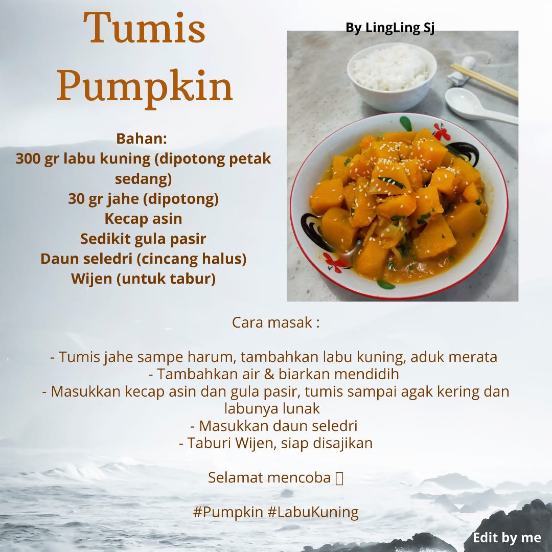 -Tumis jahe sampe harum, tambahkan labu kuning, aduk merata