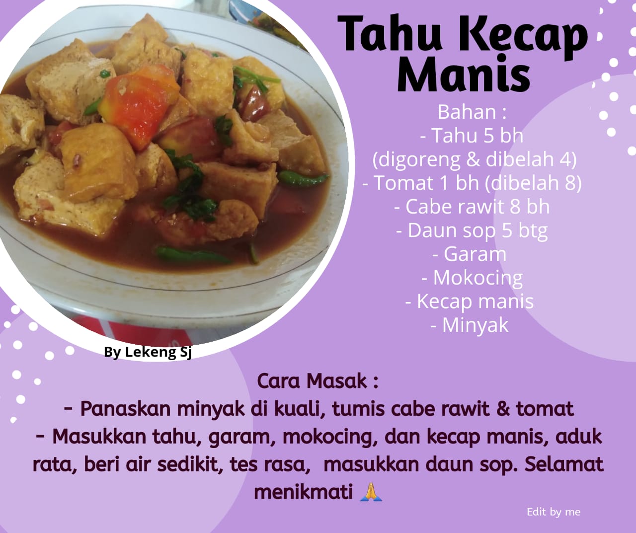– Masukkan tahu, garam, mokocing, dan kecap manis, aduk