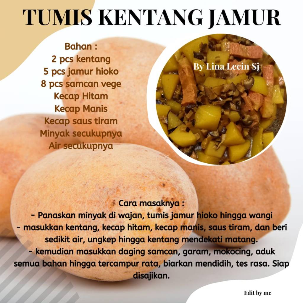 masukkan kentang, kecap hitam, kecap manis, saus tiram, dan beri