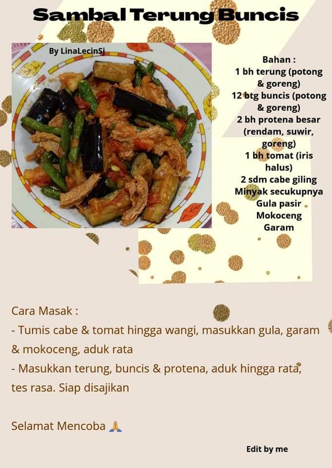 – Masukkan terung, buncis & protena, aduk hingga rata, tes rasa. Siap disajikan