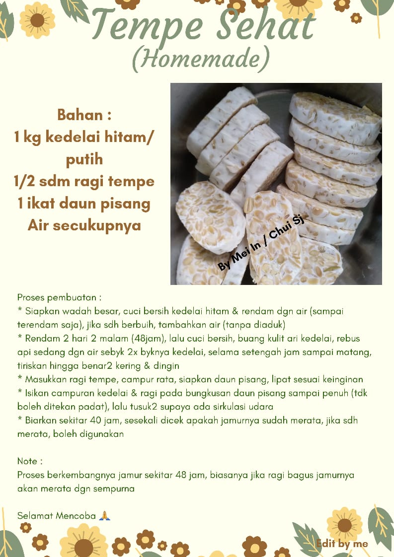 * Rendam 2 hari 2 malam (48jam), lalu cuci bersih, buang kulit ari kedelai, rebus