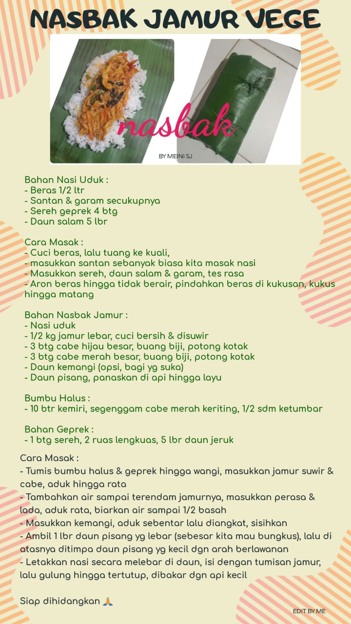 -Letakkan nasi secara melebar di daun, isi dengan tumisan jamur, lalu gulung hingga tertutup, dibakar dgn api kecil