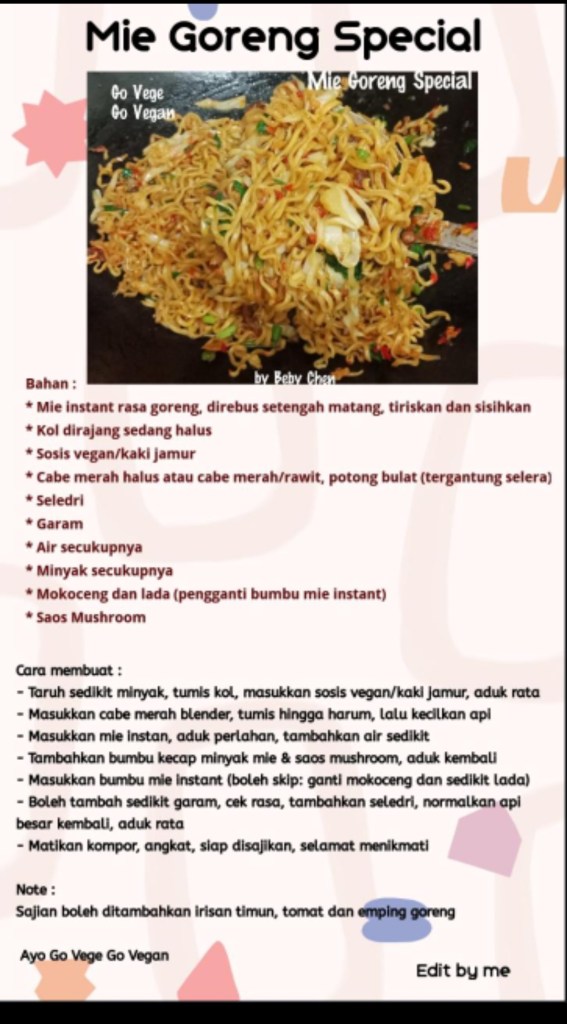 *Mie instant rasa goreng, direbus setengah matang, tiriskan dan sisihkan