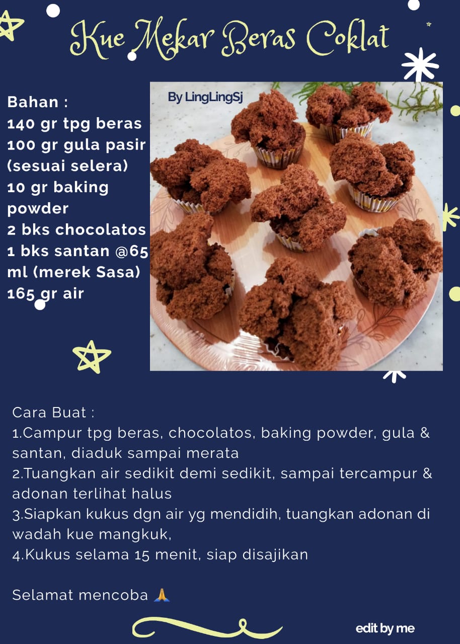 1.Campur tpg beras, chocolatos, baking powder, gula & santan, diaduk sampai merata