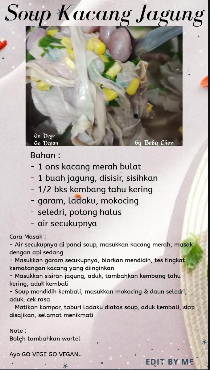 – Air secukupnya di panci soup, masukkan kacang merah, masak