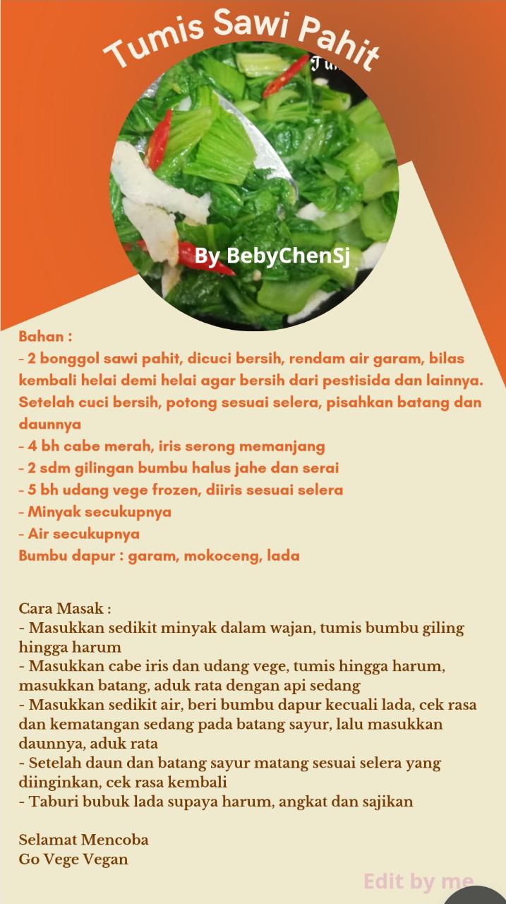 – Masukkan cabe iris dan udang vege, tumis hingga harum, masukkan batang, aduk rata dengan api sedang