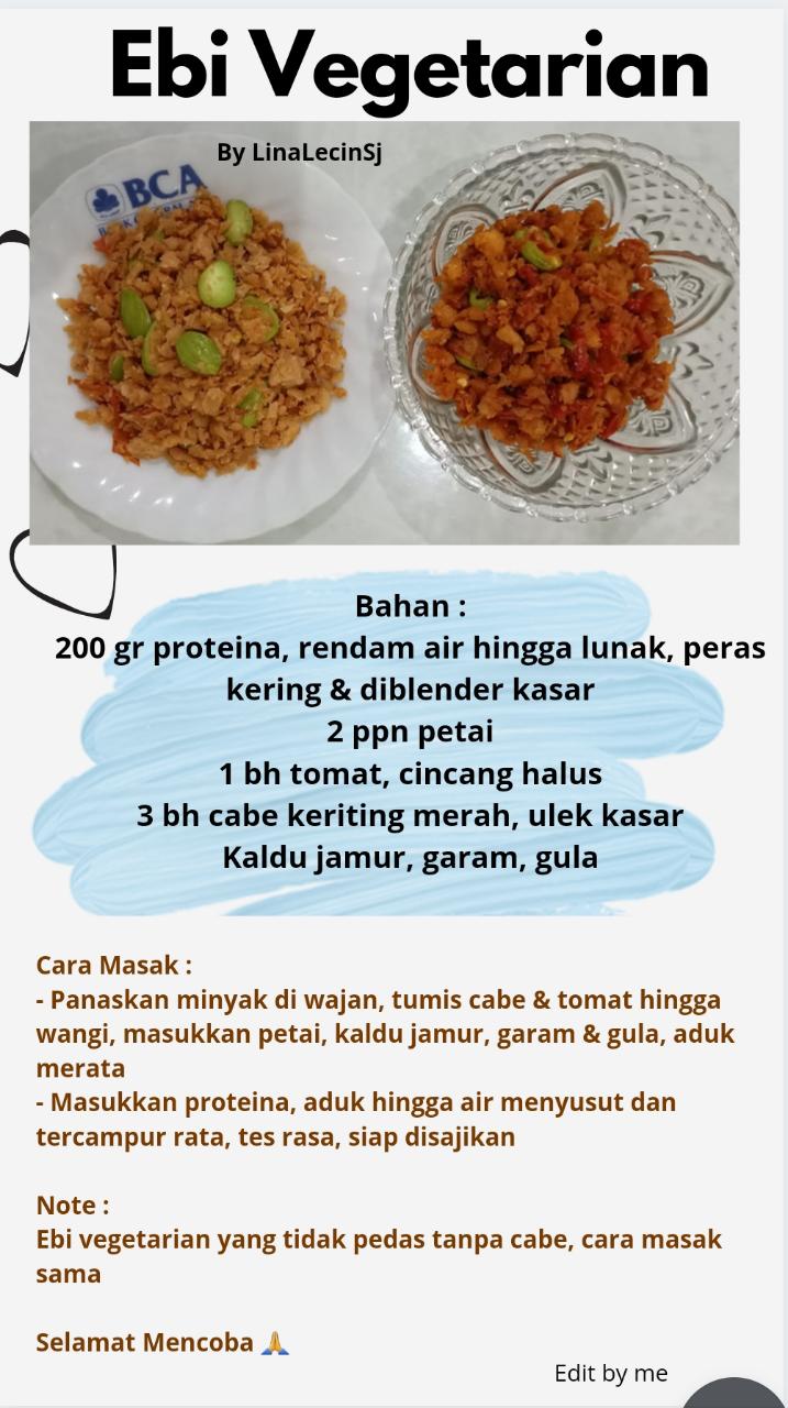 Ebi vegetarian yang tidak pedas tanpa cabe, cara masak