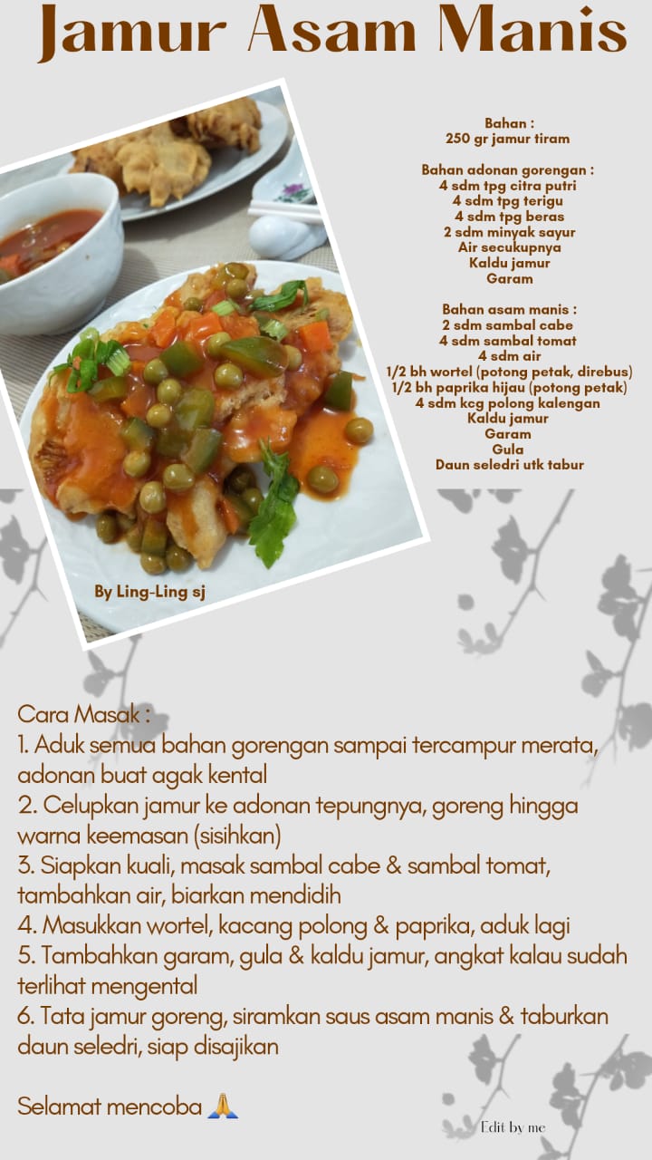 6. Tata jamur goreng, siramkan saus asam manis& taburkan
