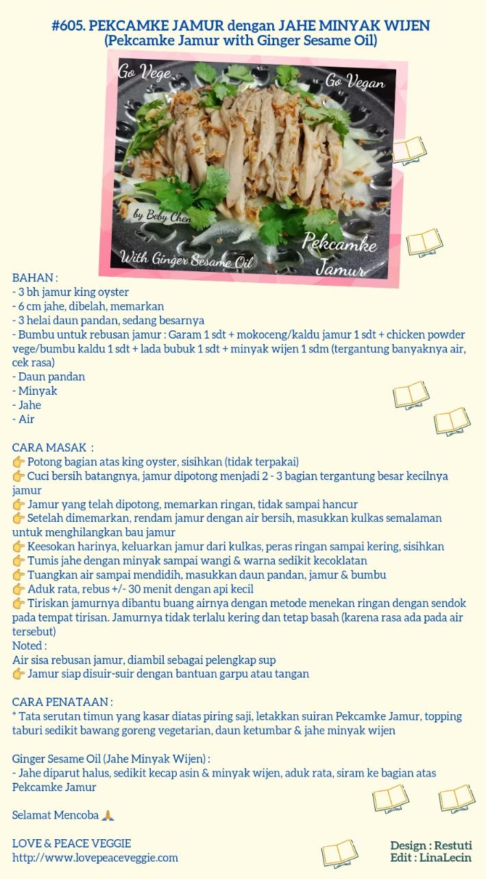 July 15, 2021 KiHo #605 PEKCAMKE JAMUR DEBGAN JAHE MINYAK WIJEN (PEKCAMKE JAMUR WITH GINGER SESAME OIL) resep vegetarian Created by Beby Chen, Edited by Restuti Shijie Bagikan di: Share on Facebook (Opens in new window) Facebook Share on WhatsApp (Opens in new window) WhatsApp Related