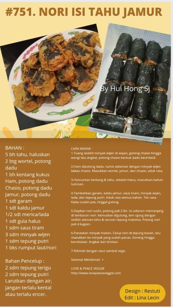 sedikit adonan tahu & larutan tepung maizena. Potong nori
